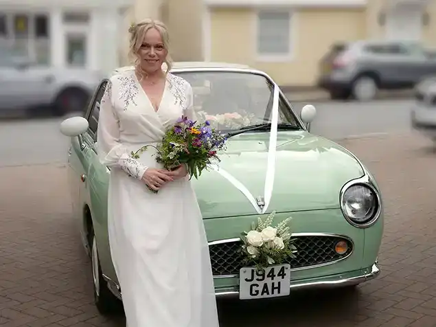"Florence (and John!) accompanied me on my wedding day and what a lovely experience it was. I used to own a Nissan Figaro, so it was such a joy to be transported to my wedding in such quirky style!